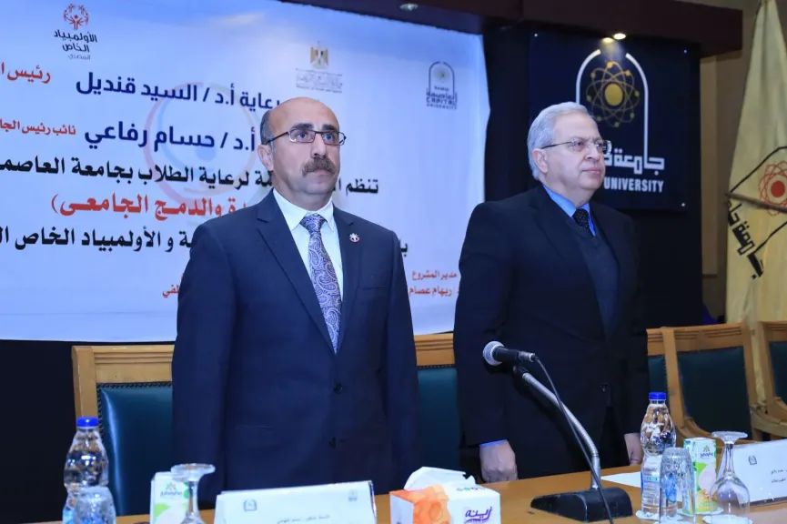 القاهرة - كورة 180 - استضافت جامعة العاصمة اليوم فعاليات “يوم الوحدة والدمج الجامعي” ضمن أنشطة المشروع القومي لتوعية الشباب بأساليب التعامل الإيجابي مع الأشخاص ذوي الإعاقة الفكرية داخل البيئة الجامعية، وذلك بالتعاون بين وزارة الشباب والرياضة والأولمبياد الخاص المصري، وبمشاركة واسعة من طلاب الجامعة.